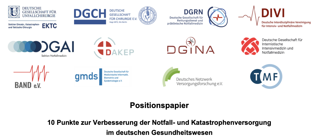 Unterzeichnende Fachgesellschaften des Positionspapiers 10 Punkte zur Verbesserung der Notfall- und Katastrophenversorgung im deutschen Gesundheitswesen sind: